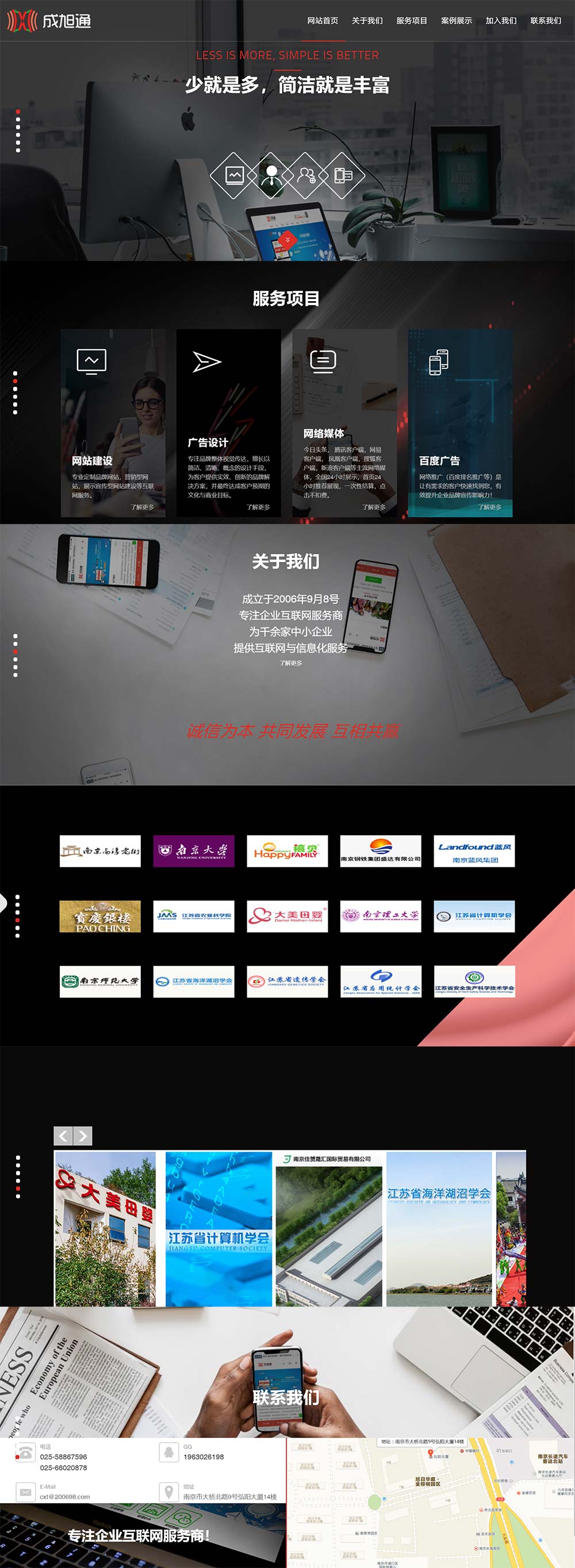 南京成旭通信息技术有限公司(简称:成旭通)成立于2006年9月8日,是南京地区服务比较完善的企业互联网广告与信息化服务的高新技术企业。为了让企业互联网广告和信息化的全面发展,我们始终坚持“诚信为本,共同发展,互相共赢”;近年来,成旭通凭借其独特的服务模式,迅速得到政府部门,行政事业单位及广大企业用户的认可,我们为近千家中小企事业单位提供过互联网广告与企业信息化服务。