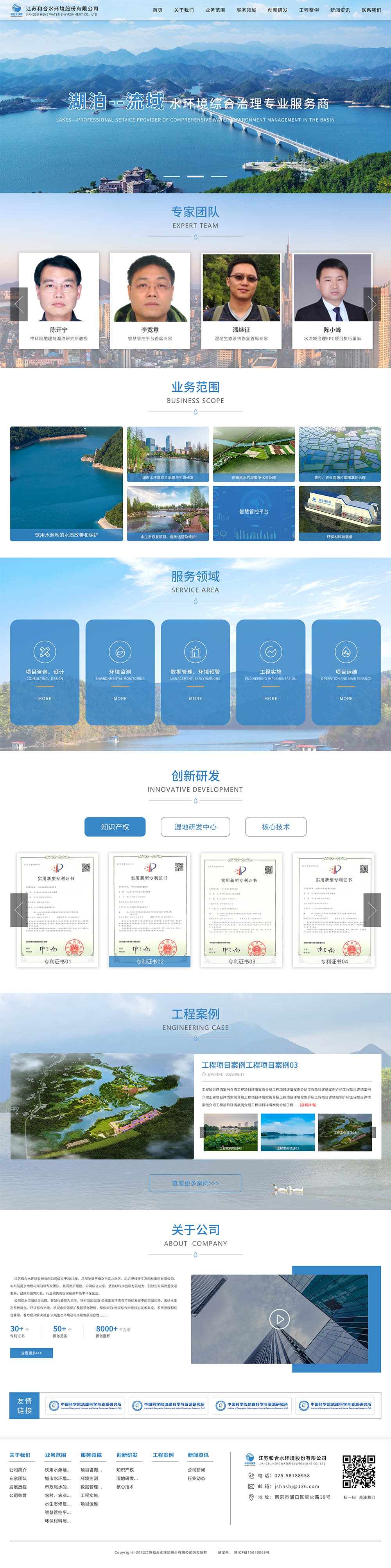 江苏和合水环境(股份)有限公司成立于2015年,总部坐落于南京市江北新区。由合肥绿叶生态园林集团有限公司、中科院南京地理与湖泊所专家团队、共同出资组建。公司成立以来,坚持以科技创新为驱动力、引领企业高质量快速发展,已成为国内知名、行业领先的国家级高新技术环保企业。