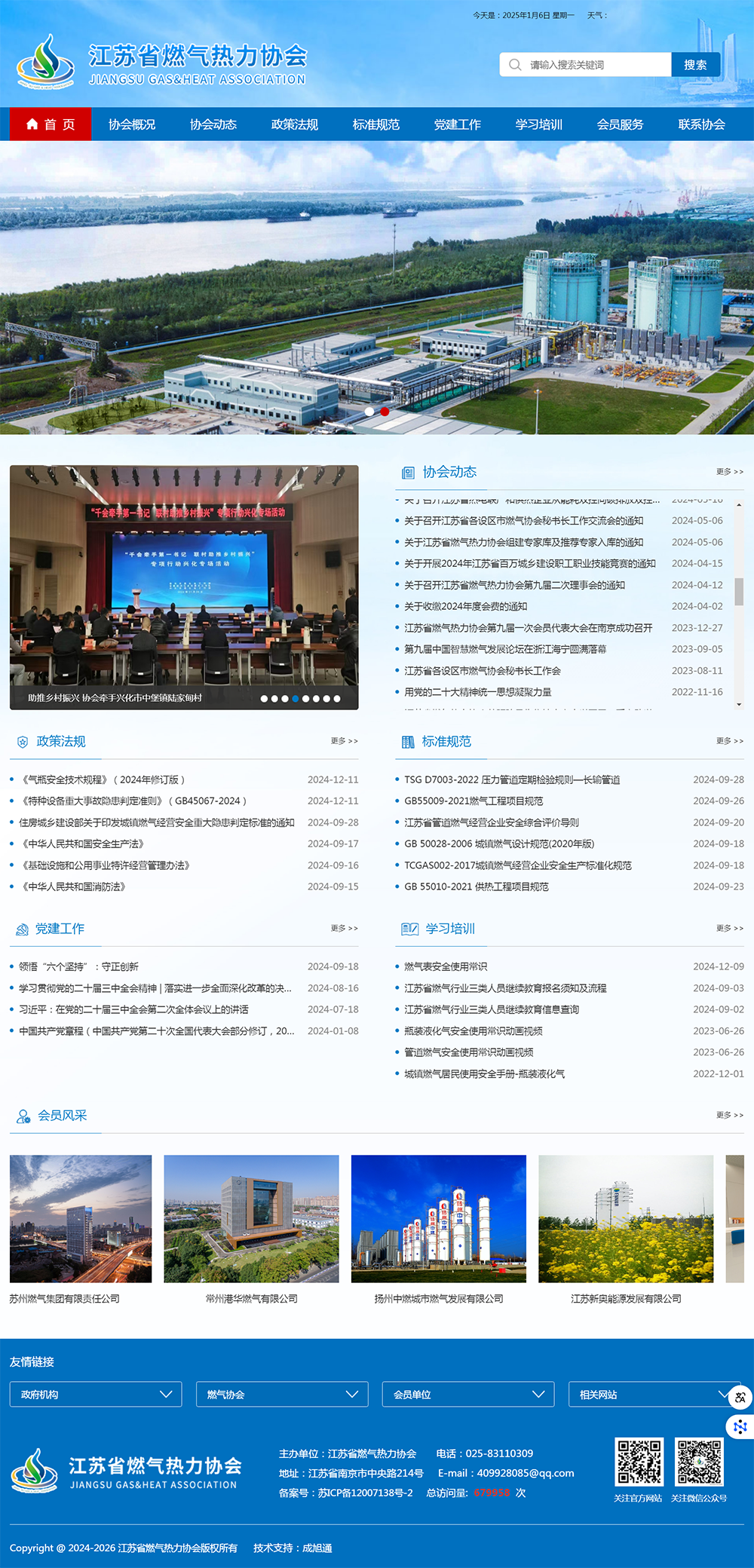 江苏省燃气协会成立于1989年4月。2005年5月经江苏省民政厅批准更名为:江苏省燃气热力协会,英文名称为:JIANGSU GAS&HEAT ASSOCIATION,缩写为:JSGHA。协会在江苏省住房和城乡建设厅、江苏省民政厅的指导下,由江苏省内城镇燃气企业、热力企业、燃气行业管理部门、燃气协会、设计研究院以及省内外设备生产企业等相关单位自愿参加组成的行业非营利性民间组织,是具有法人资格的社会团体。